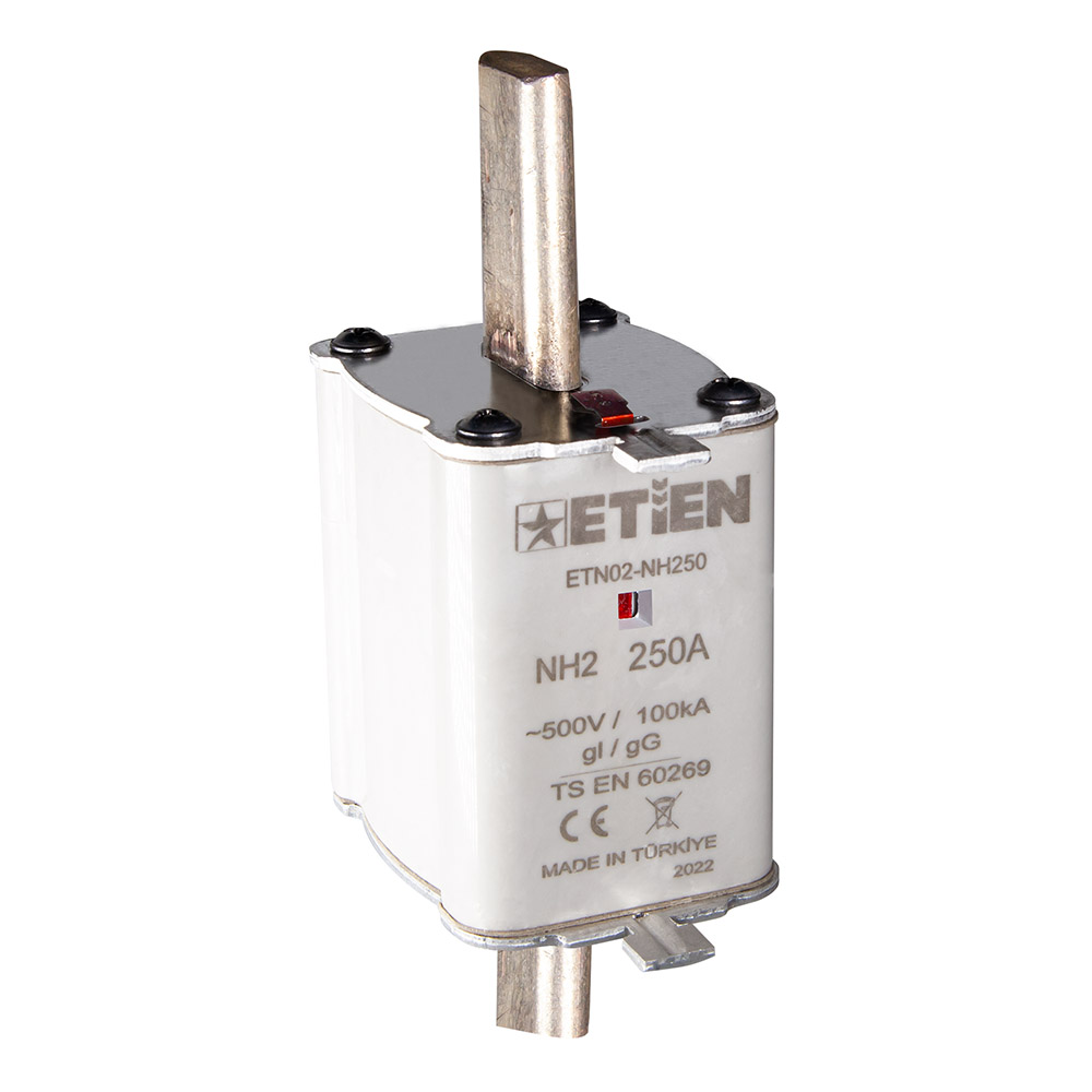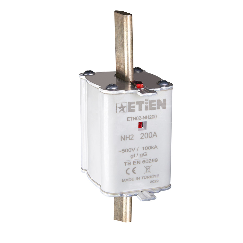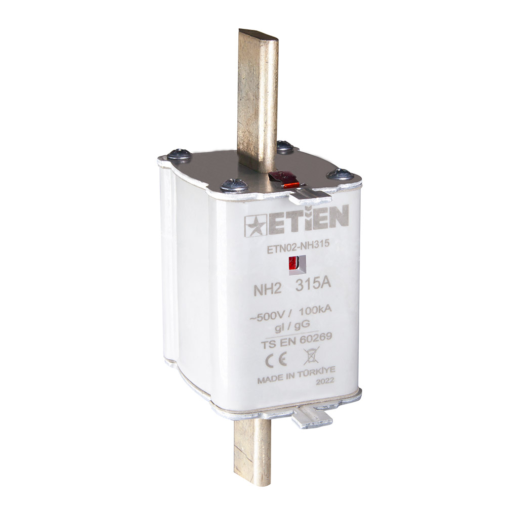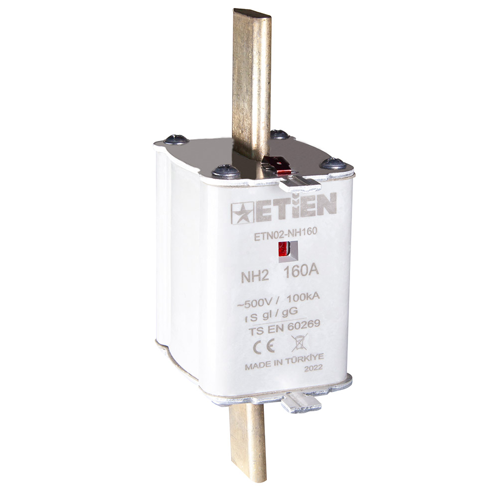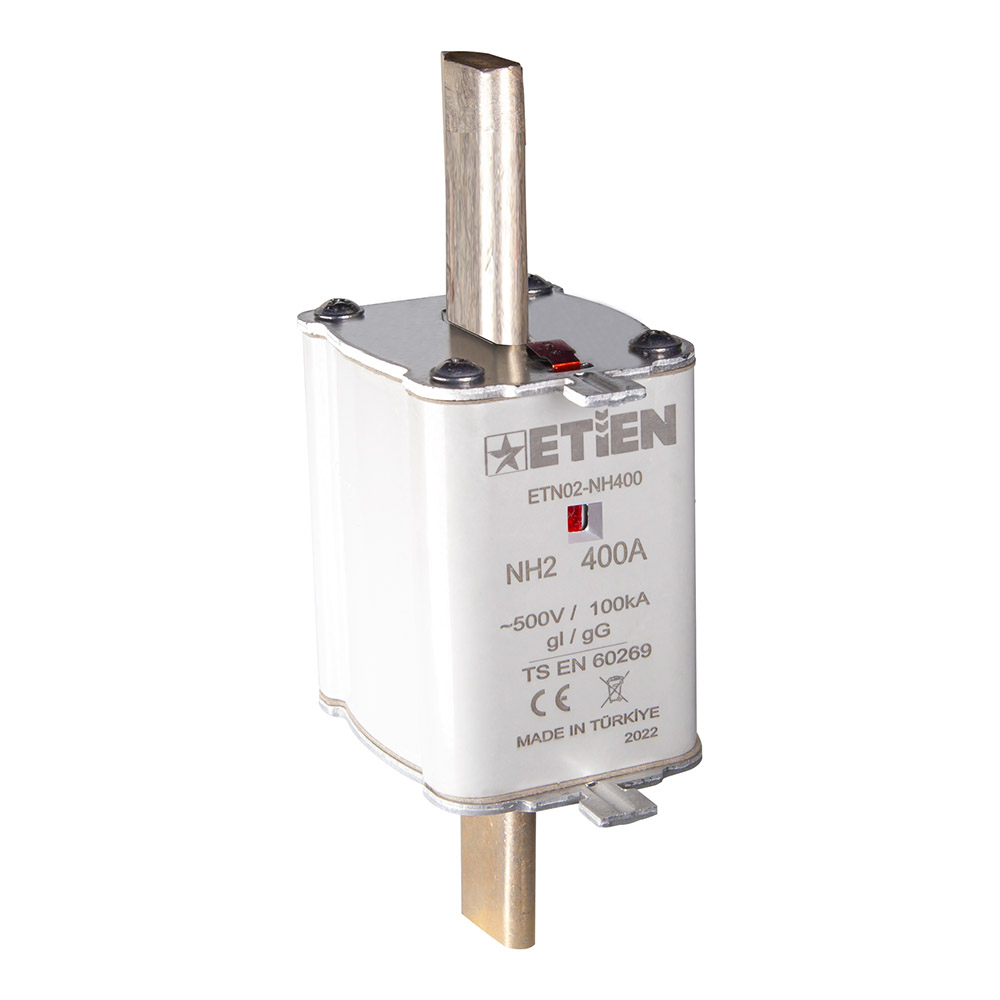 ETİEN Yeni Nesil Termoset A.G. NH Bıçaklı Sigorta Buşonları, NH00, NH1 ve NH2 boyutlarında üretimi yapılmaktadır. Çift indikatör özelliği sayesinde ürün güvenli olarak tüm A.G. sistemlerinde kullanıma uygundur.